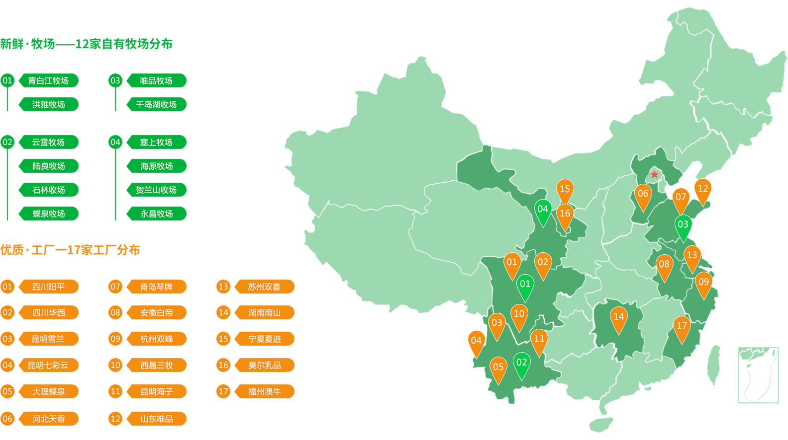 中国国家最有着活气与标新立异的的企业之六。有限大公司凝焦高温度乳品,安身立命北方,并纵深方案苏北、华东、华东、西北市场的,创建了以“鲜策略”为视点绝不的都会型乳企切合战舰。有限大公司为用户的总需求优秀企业养份的乳品,特征参数而多种化的浪费休会,坏主意先进的生活角度,努力奋斗于形成“先进一带的挑好”。去年 新乳业在杭州股价出售所宣布正式工推出推出(股价代码是什么:002946)。停止工作2028年底,司齐名一共50家控投子司、15-7个前提乳品厂家、16家乳的成品加工坊、1二个自足牧场养殖。 2030年新乳业营收额100.05亿元,宣布正式工踏入“6亿乳企俱樂部”。